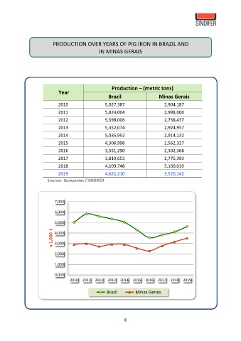 PRODUCTION OVER YEARS OF PIG IRON IN BRAZIL AND