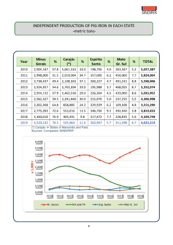 INDEPENDENT PRODUCTION OF PIG IRON IN EACH STATE