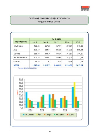 DESTINOS DO FERRO-GUSA EXPORTADO